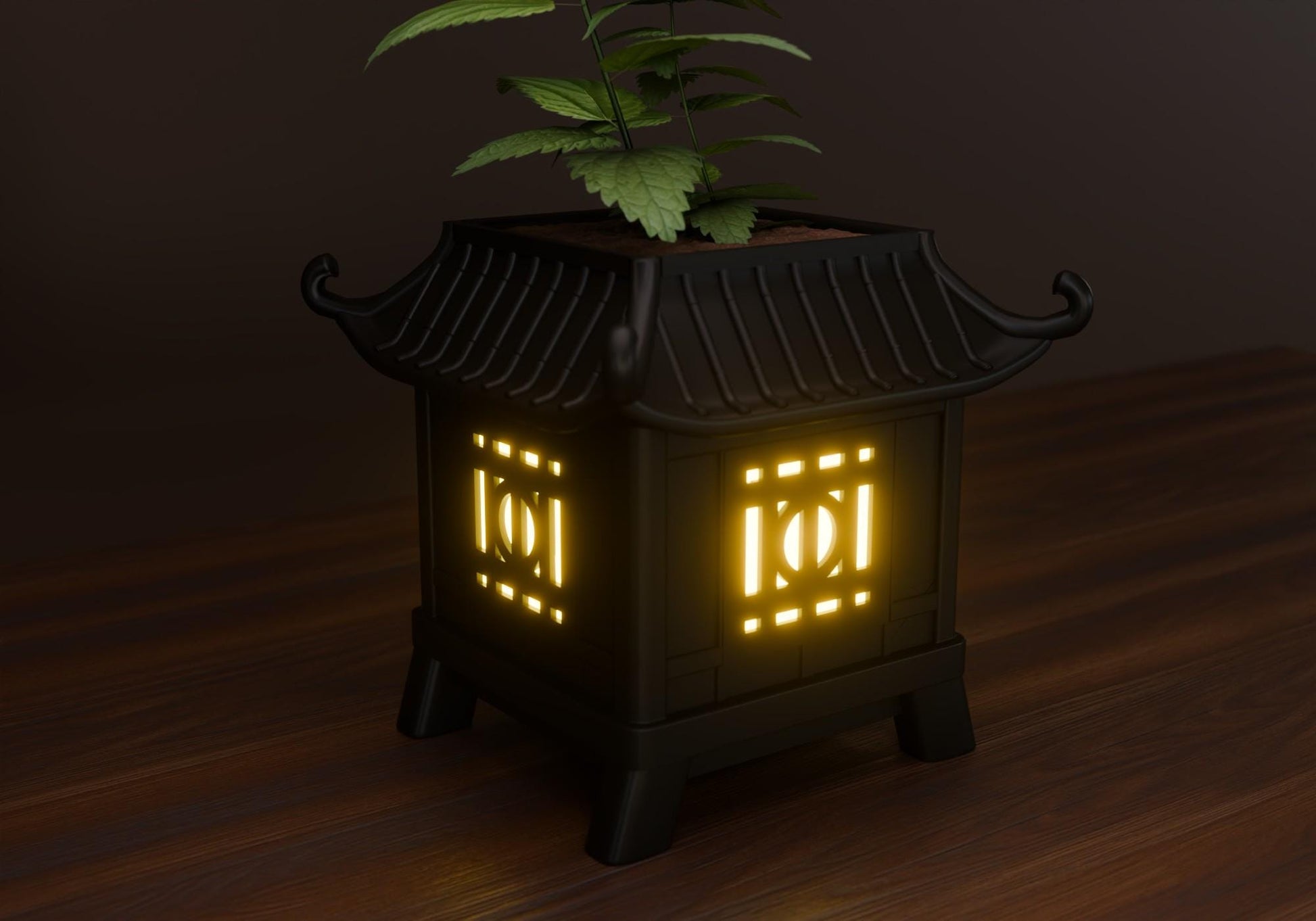 Asian Pagoda Lantern Zen Style Indoor Planter & Nightlight - 3D