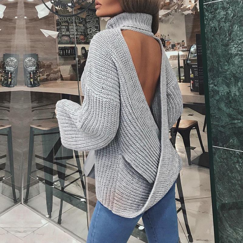 Backless sexy long sleeve pullover Women knitted winter