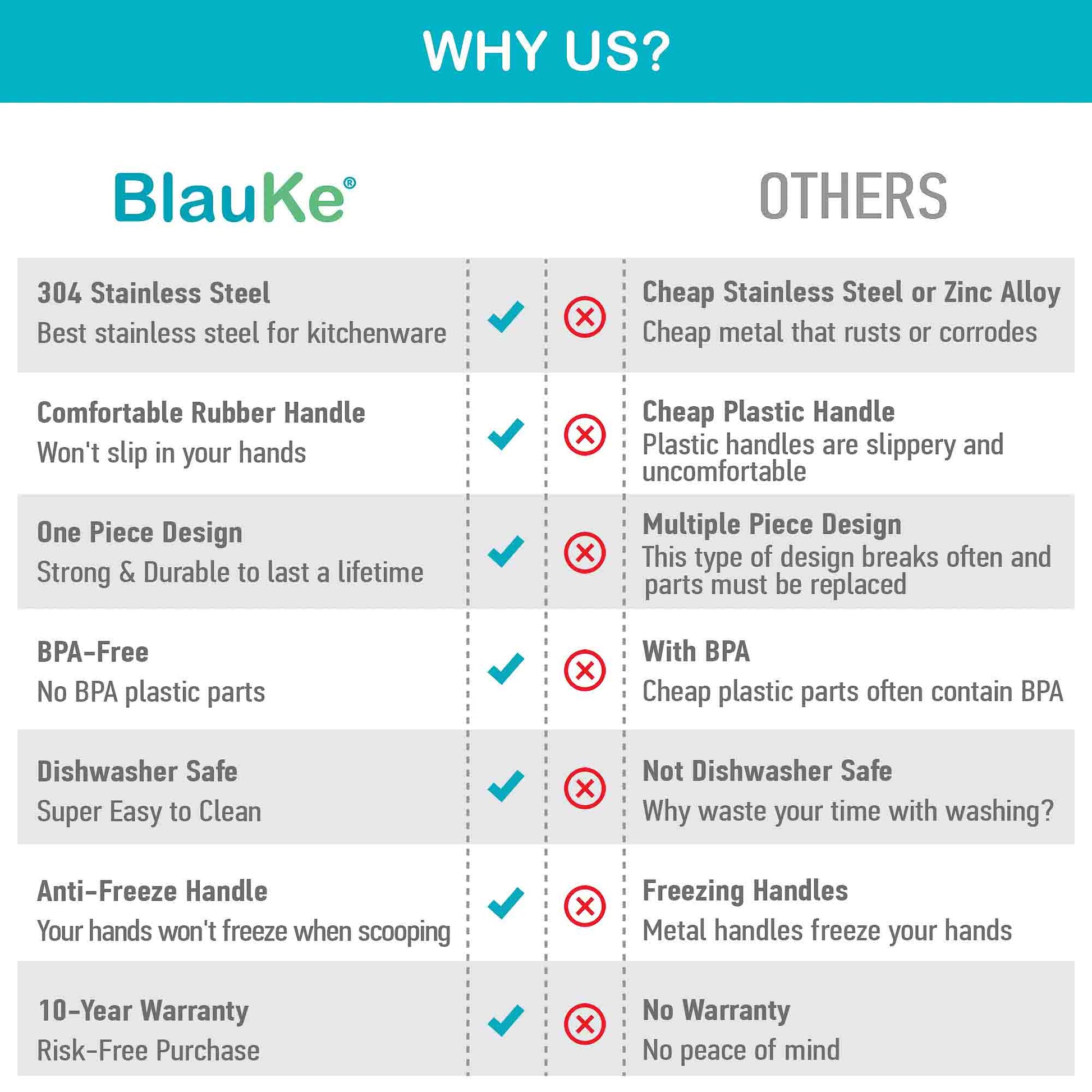 With a rubber handle, your hands won't freeze when scooping.