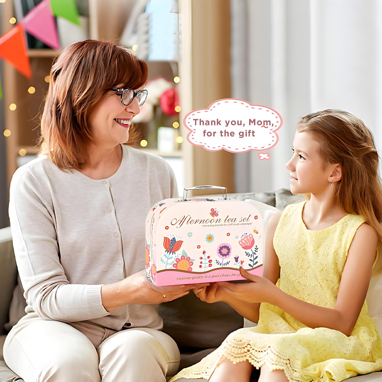 - Perfect gift: a tea party or picnic party for any girl. The tea set is not only a toy, but also serves as a fantastic decoration for children's rooms. Our tea set comes with a delicate carry bag, is lightweight and easy to store and is sure to be girls 3 4 5 6 7 8 9 years gift ideas for birthday/Christmas/Halloween etc.